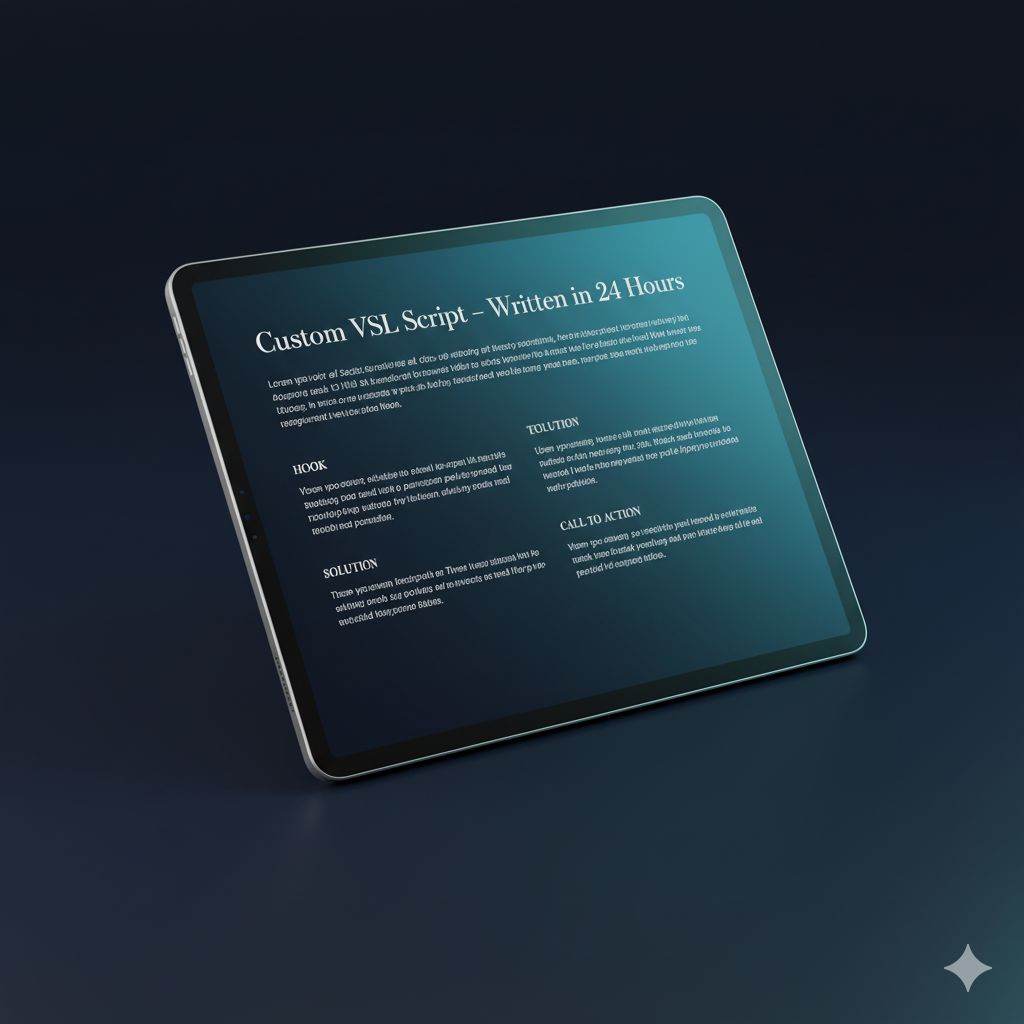 Receive your complete, high-converting VSL script in under 24 hours, ready to record and start converting traffic.